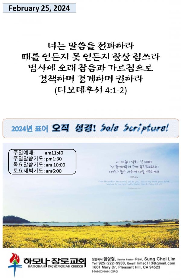 날짜: 2024.02.25 글쓴이 : 관리자 | 주보보기 Bulletins
