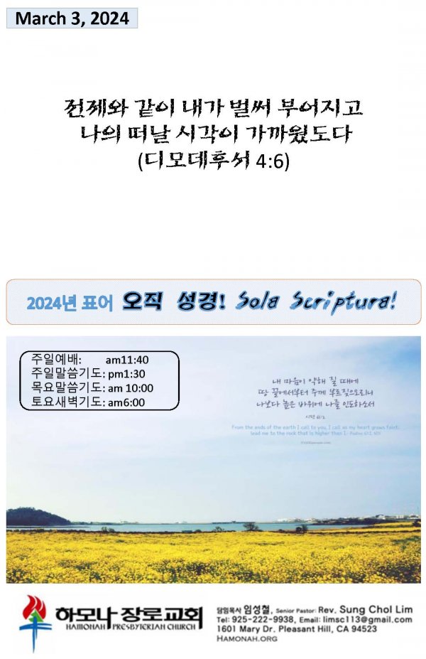 날짜: 2024.03.03 글쓴이 : 관리자 | 주보보기 Bulletins