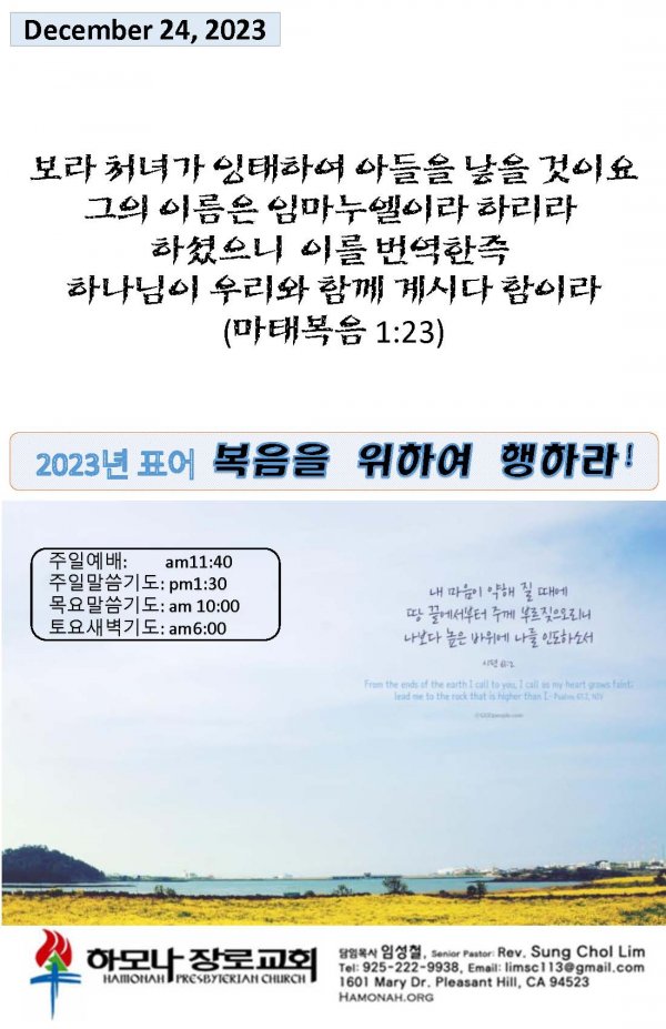 날짜: 2023.12.31 글쓴이 : 관리자 | 주보보기 Bulletins