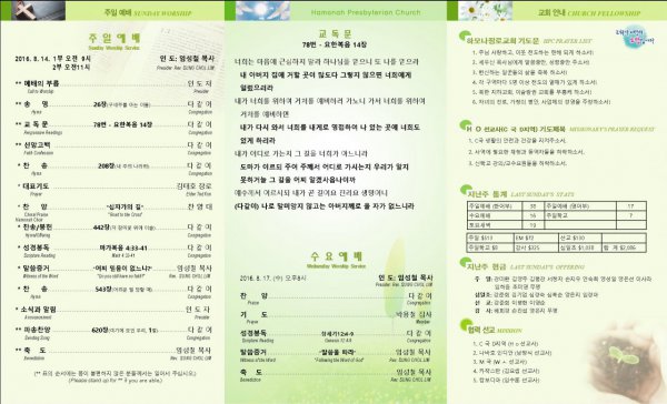 날짜: 2016.08.14 글쓴이 : 관리자 | 주보보기 Bulletins