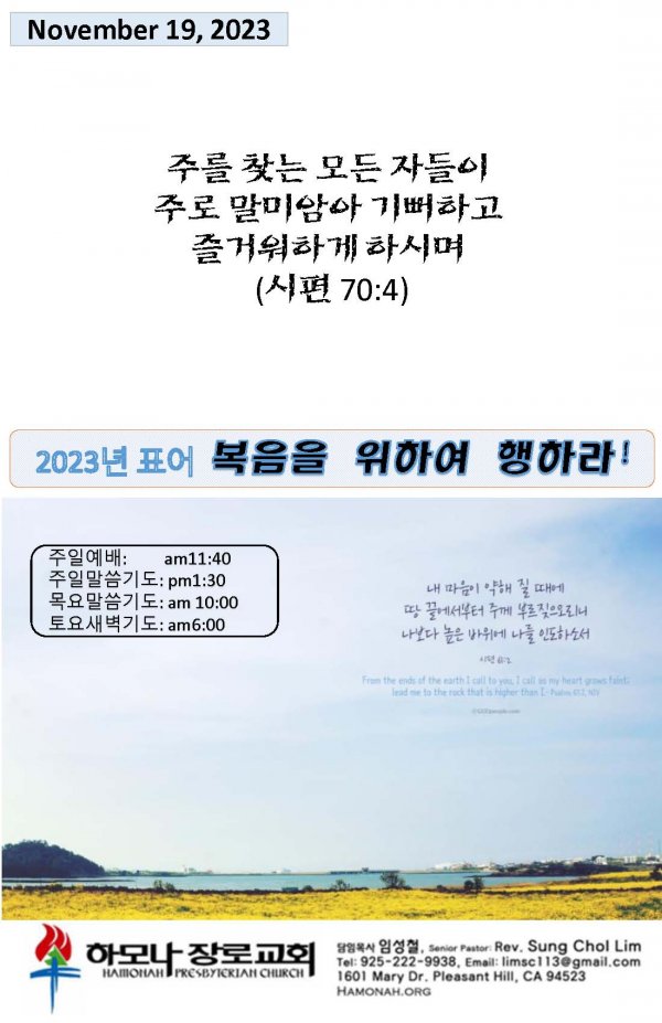 날짜: 2023.11.19 글쓴이 : 관리자 | 주보보기 Bulletins