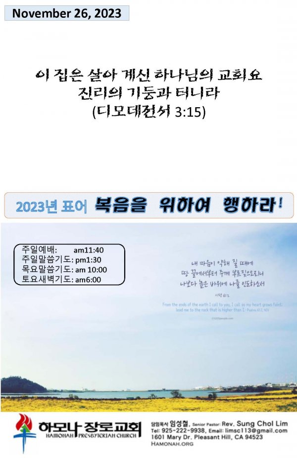 날짜: 2023.11.26 글쓴이 : 관리자 | 주보보기 Bulletins