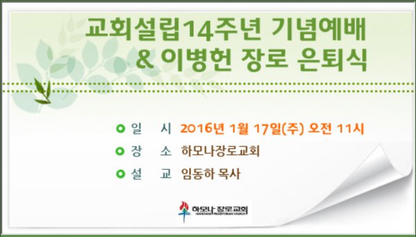 2016-1-17 교회설립14주년 기념예배 & 이병헌 장로 은퇴식