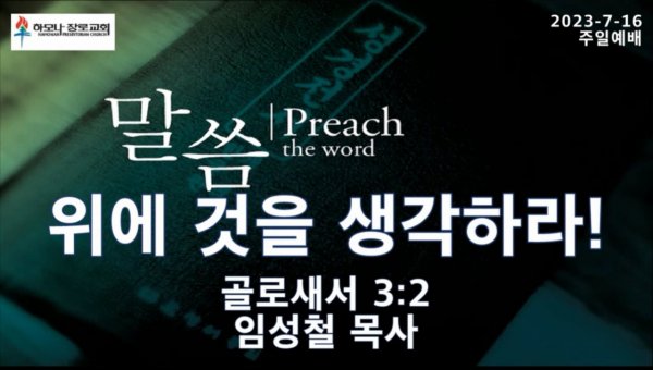 2023-7-16 위에 것을 생각하라! 골로새서 3:2, 주일예배, 하모나장로교회, 임성철 목사