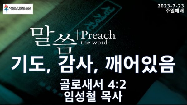 2023-7-23 기도, 감사, 깨어있음, 골로새서 4:2, 주일예배, 하모나장로교회, 임성철 목사