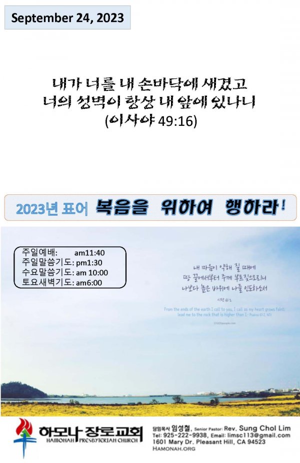 날짜: 2023.09.24 글쓴이 : 관리자 | 주보보기 Bulletins