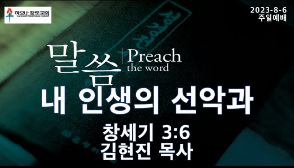 2023-8-6 내 인생의 선악과, 창세기 3:6, 주일예배, 하모나장로교회, 김현진 목사