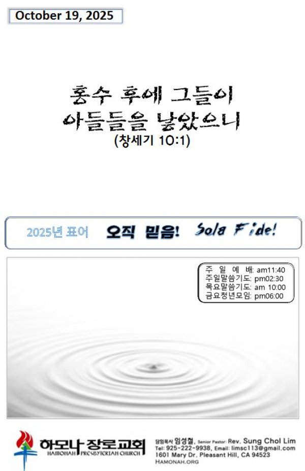 날짜: 2025.10.19 글쓴이 : Administer | 주보보기 Bulletins