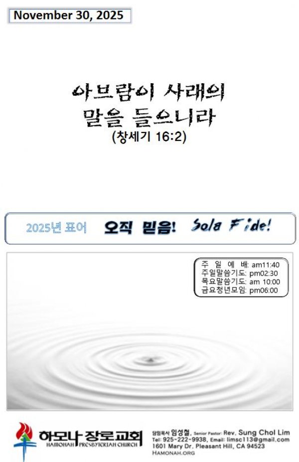 날짜: 2025.11.30 글쓴이 : Administer | 주보보기 Bulletins