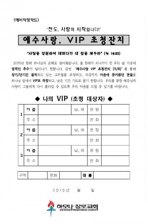 2015-10-18 가을, 예수사랑, VIP 초청잔치 예비작정카드