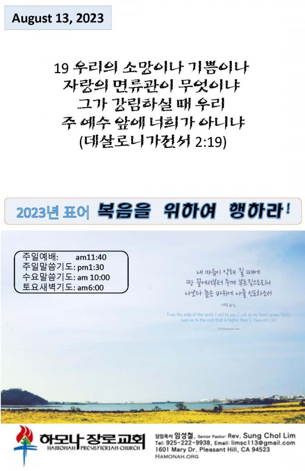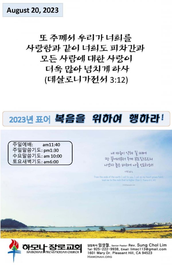날짜: 2023.08.20 글쓴이 : 관리자 | 주보보기 Bulletins