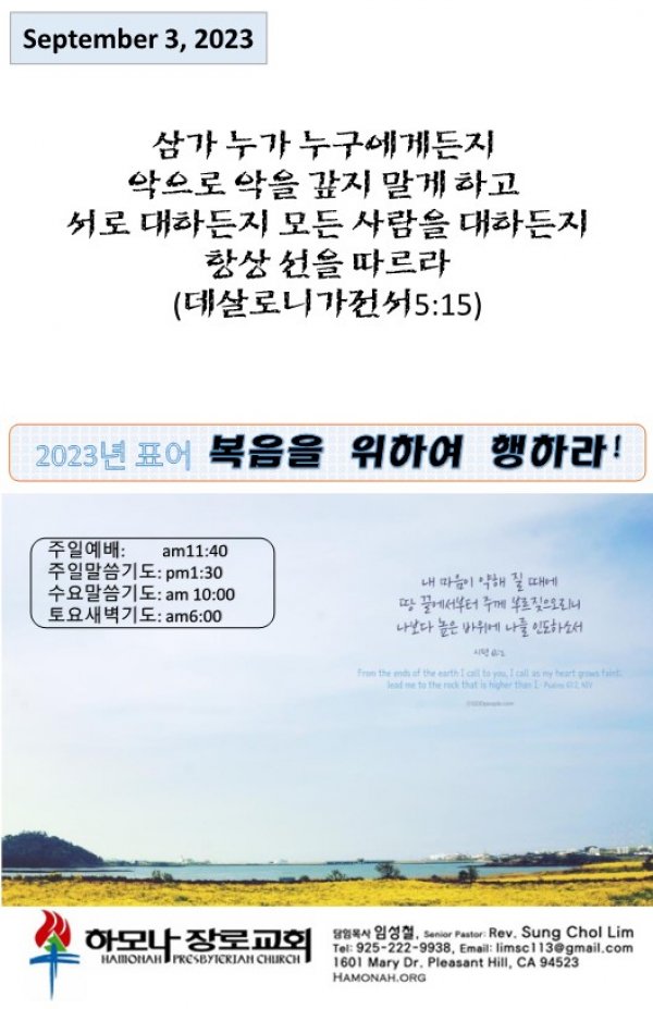 날짜: 2023.09.03 글쓴이 : 관리자 | 주보보기 Bulletins