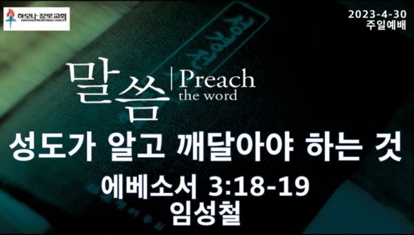 2023-4-30 성도가 알고 깨달아야 하는 것, 에베소서 3:18-19, 주일예배, 하모나장로교회, 임성철 목사