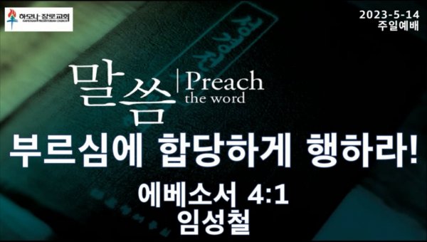 2023-5-14 부르심에 합당하게 행하라! 에베소서 4:1, 주일예배, 하모나장로교회, 임성철 목사