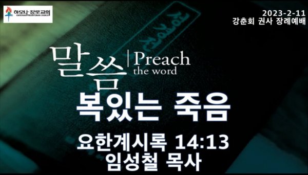 2023-2-11 복있는 죽음, 요한계시록 14:13 강춘회 권사 장례예배, 하모나장로교회, 임성철 목사