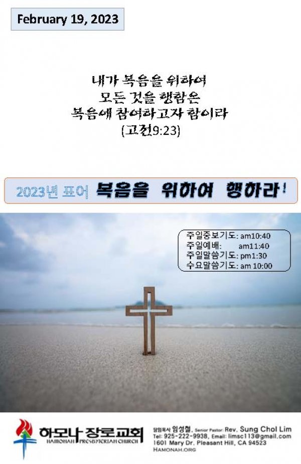 날짜: 2023.02.19 글쓴이 : 관리자 | 주보보기 Bulletins