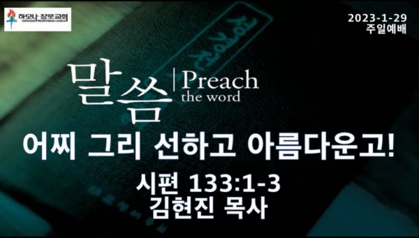 2023-1-29 어찌 그리 선하고 아름다운고, 시편 133:1-3, 주일예배, 김현진 목사(월넛크릭하나교회)