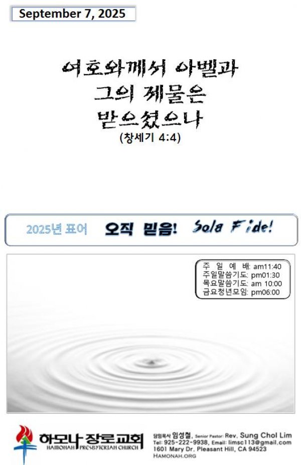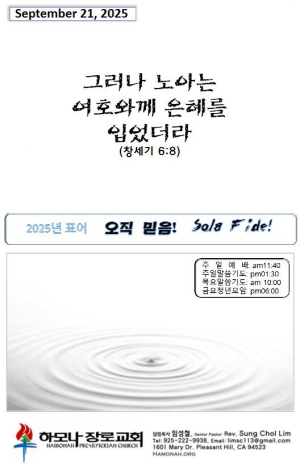 날짜: 2025.09.14 글쓴이 : Administer | 주보보기 Bulletins