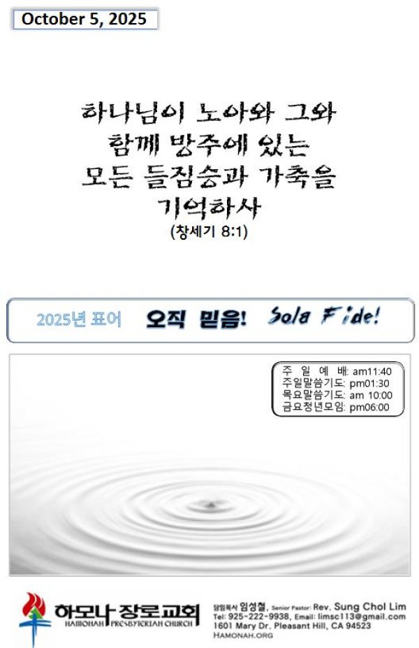 날짜: 2025.10.05 글쓴이 : Administer | 주보보기 Bulletins