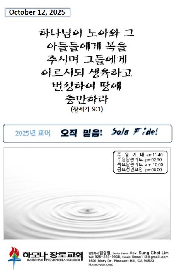 날짜: 2025.10.12 글쓴이 : Administer | 주보보기 Bulletins