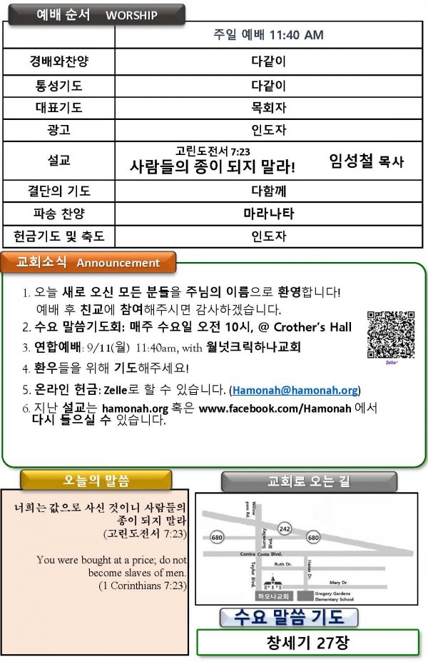 2022-9-4 사람들의 종이 되지 말라! 고린도전서 7:23, 주일예배, 하모나장로교회, 임성철 목사