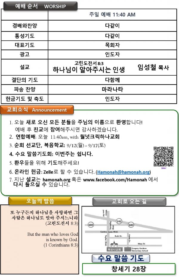 2022-9-11 하나님이 알아주시는 인생 고린도전서 8:3, 주일예배, 하모나장로교회, 임성철 목사