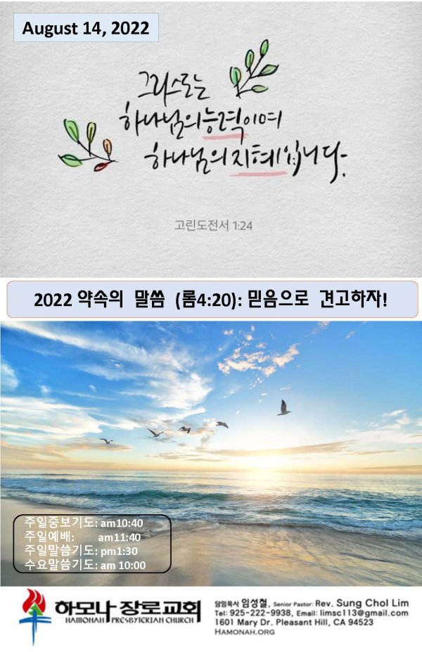 날짜: 2022.08.14 글쓴이 : 관리자 | 주보보기 Bulletins