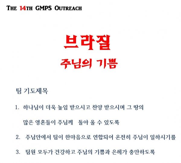 미주 선교관학교 아웃리치 단기선교팀 (브라질) 기도 제목