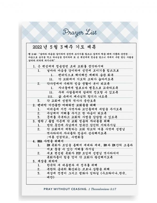 날짜: 2022.05.11 글쓴이 : 관리자 | 기도요청 Prayer Request