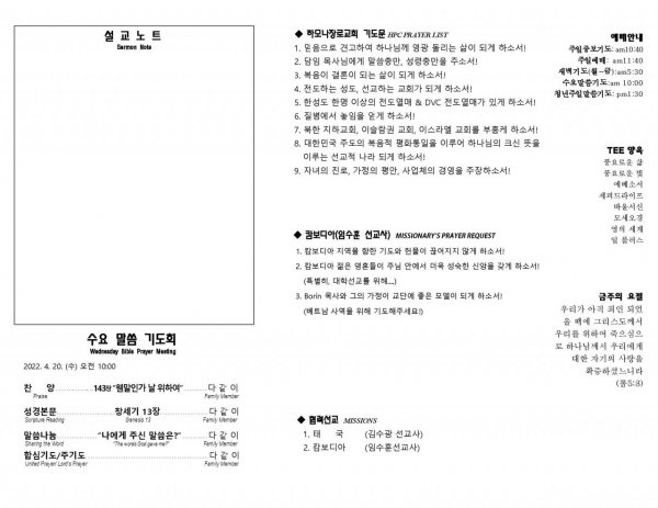 날짜: 2022.05.04 글쓴이 : 관리자 | 기도요청 Prayer Request