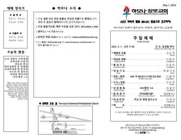 날짜: 2022.05.01 글쓴이 : 관리자 | 주보보기 Bulletins