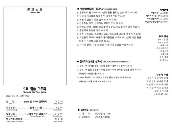 날짜: 2022.04.06 글쓴이 : 관리자 | 기도요청 Prayer Request