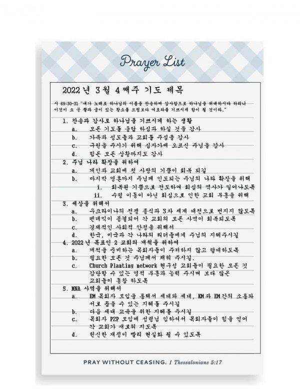 2022-3-4주 기도제목