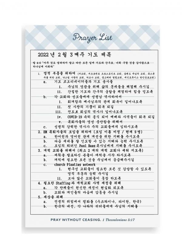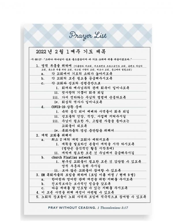 2022년 2월 1째주 기도 제목