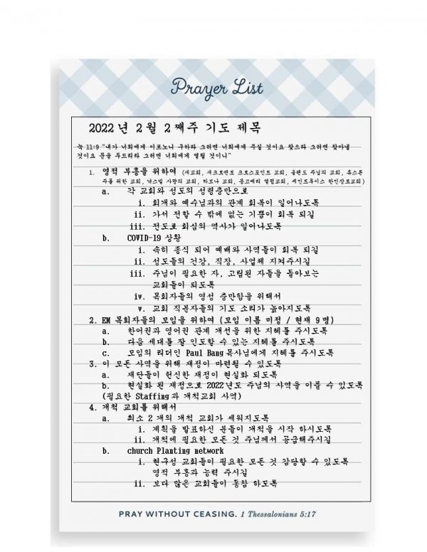 2022년 2월 2째주 기도 제목