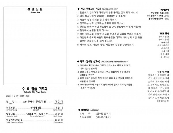 날짜: 2022.01.09 글쓴이 : 관리자 | 주보보기 Bulletins
