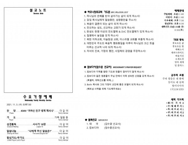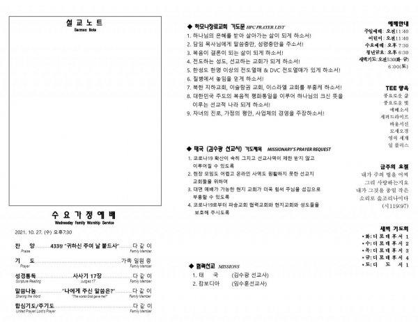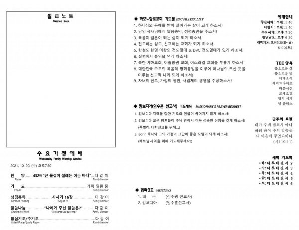 날짜: 2021.10.24 글쓴이 : 관리자 | 주보보기 Bulletins