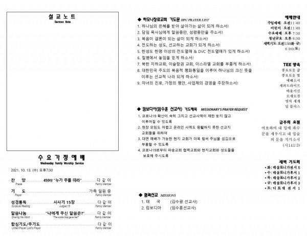 날짜: 2021.10.03 글쓴이 : 관리자 | 교회소식 News