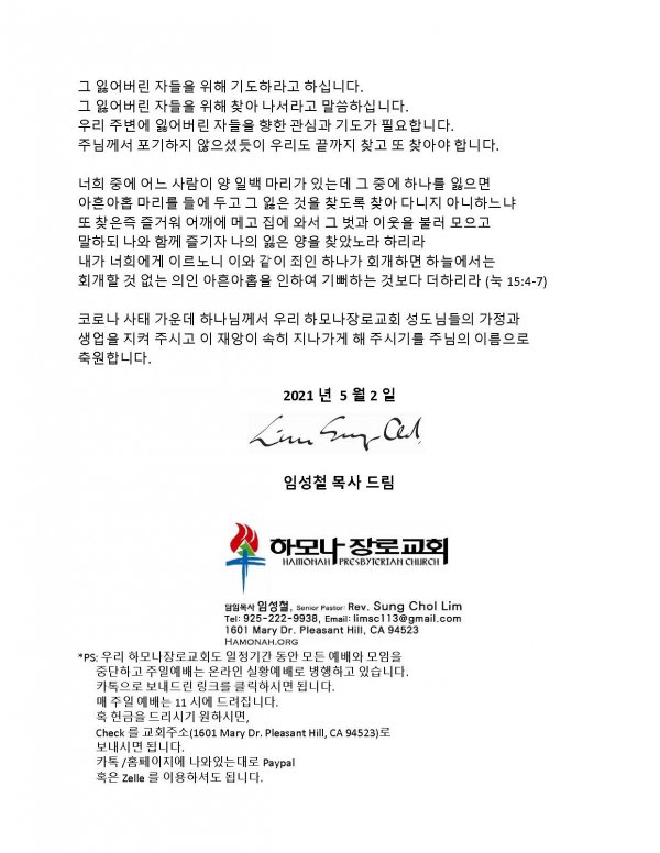 날짜: 2021.05.02 글쓴이 : 관리자 | 교회소식 News