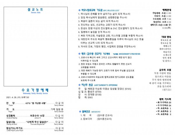 날짜: 2021.04.25 글쓴이 : 관리자 | 주보보기 Bulletins