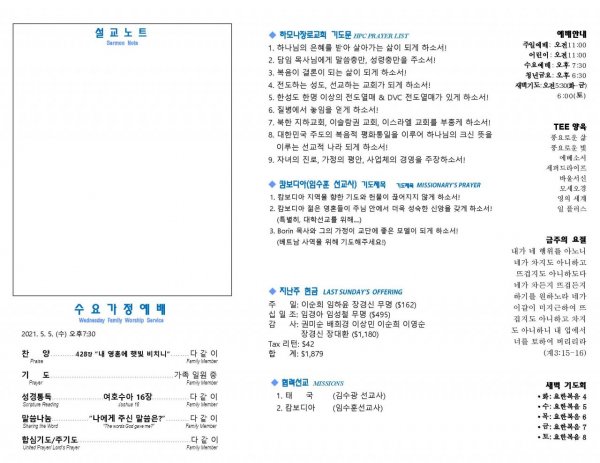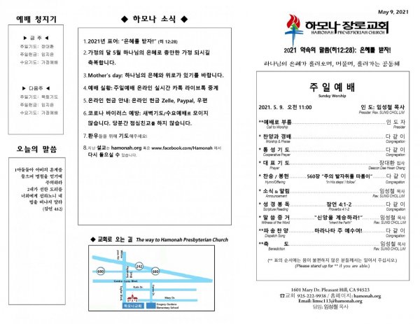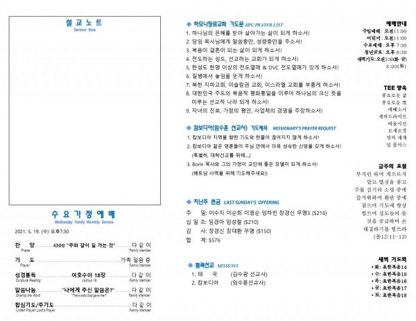 날짜: 2021.05.09 글쓴이 : 관리자 | 주보보기 Bulletins