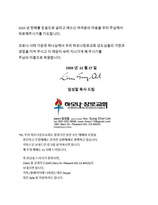 날짜: 2020.12.27 글쓴이 : 관리자 | 교회소식 News