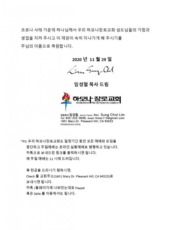 날짜: 2020.11.22 글쓴이 : 관리자 | 교회소식 News