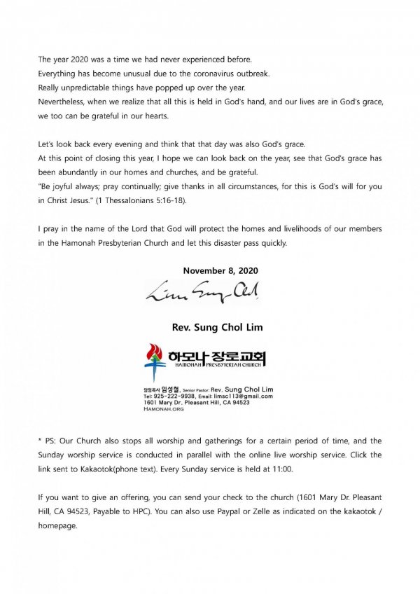 날짜: 2020.11.01 글쓴이 : 관리자 | 교회소식 News