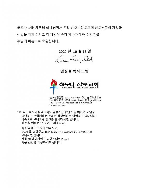 날짜: 2020.10.24 글쓴이 : 관리자 | 교회소식 News