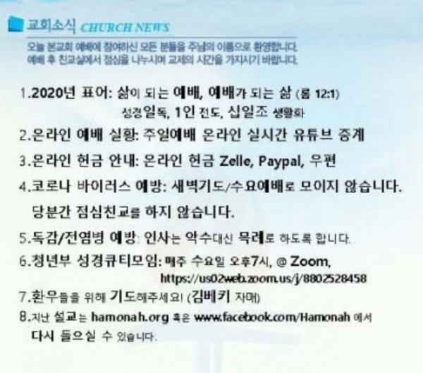 2020-6-7 교회소식
