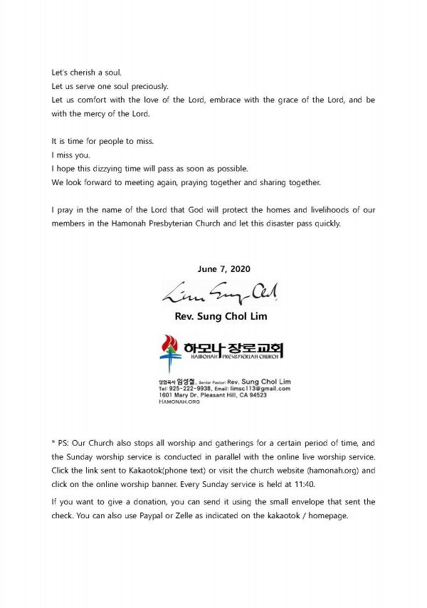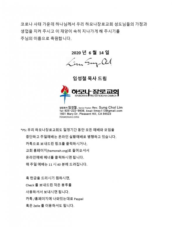2020-6-14 하모나장로교회 주일예배 실시간 온라인 실황 (Full Version)