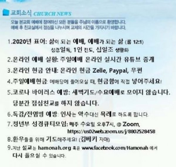 날짜: 2020.06.07 글쓴이 : 관리자 | 교회소식 News