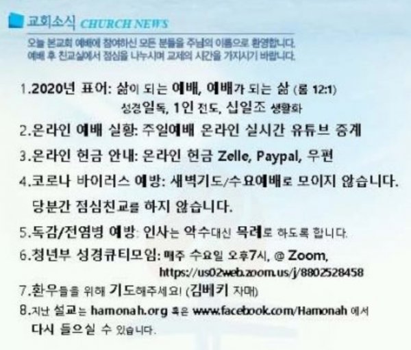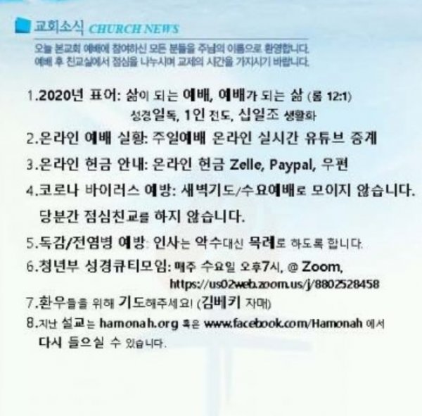 날짜: 2020.05.28 글쓴이 : 관리자 | 교회소식 News