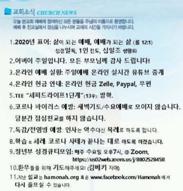 날짜: 2020.05.17 글쓴이 : 관리자 | 교회소식 News